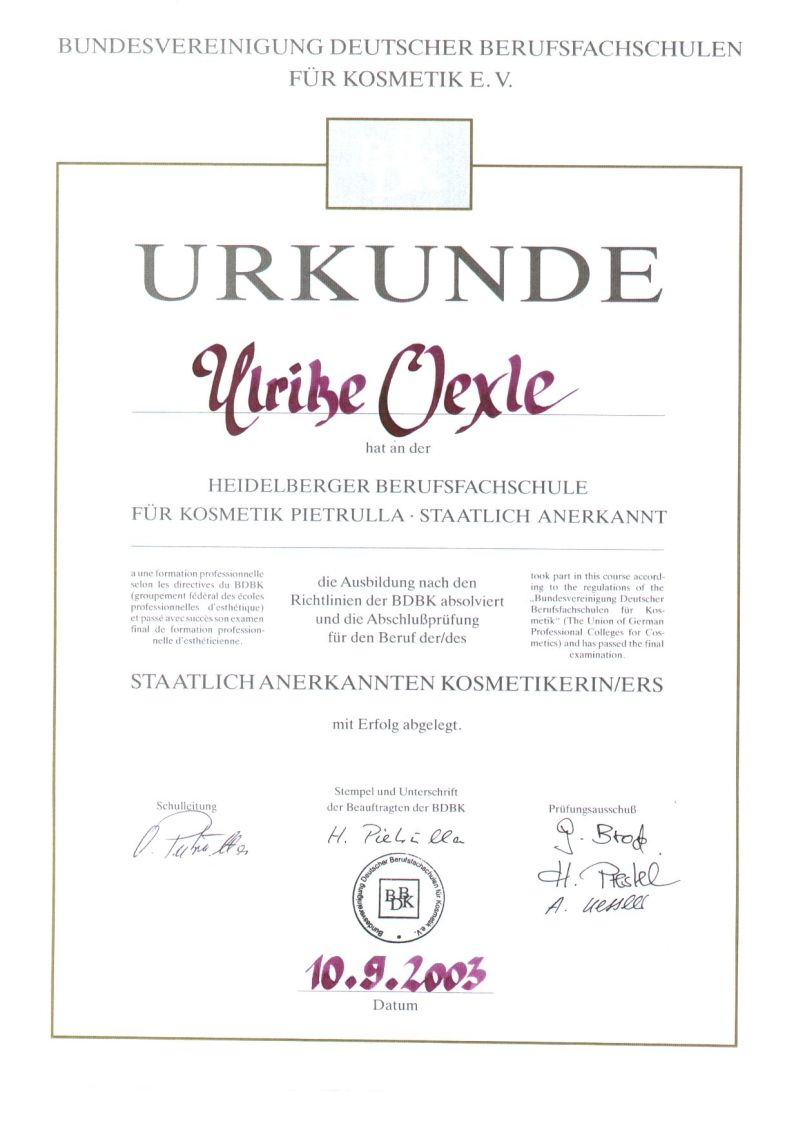 Für alle, die mich noch nicht kennen und sich gerne ein Bild von meiner Qualifikation machen möchten, habe ich meine Zeugnisse und Diplome auf dieser Seite hinterlegt. Um Ihnen stets den besten Service und die optimalen Behandlungen anbieten zu können, stehen auch in Zukunft für mich stets neue Fortbildungsmaßnahmen auf dem Programm.